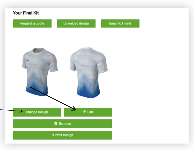 Når du har designet din trøje vil den fremgå her. Her har du mulighed for at gå tilbage og ændre i designet ved at trykke på ”Edit”.