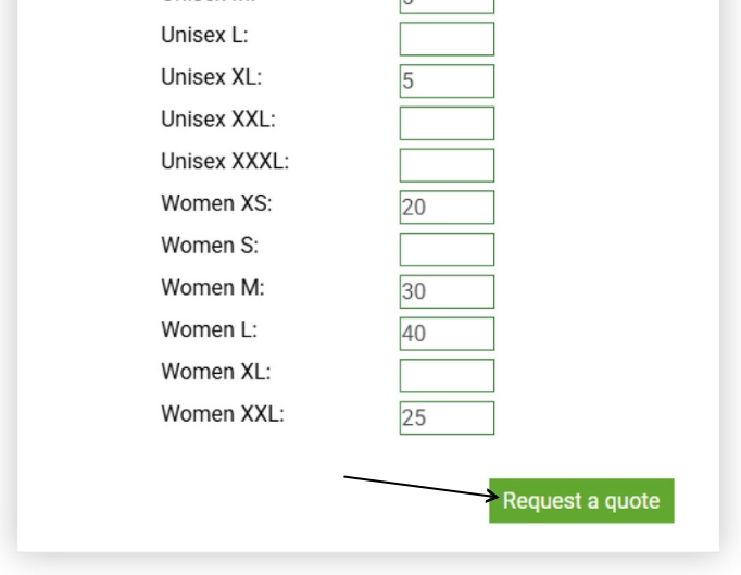 Hvis du på forhånd ved hvor mange antal og i hvilke størrelser som designet ønskes, bedes du trykke på ”Add sizes and quantitites”.