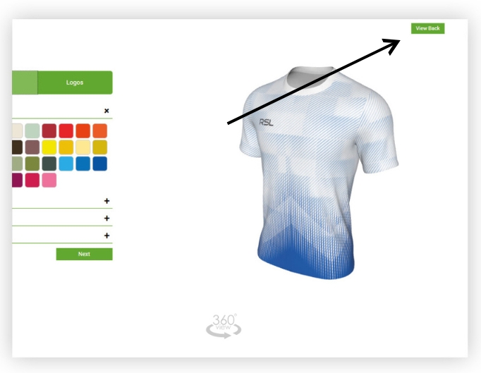 Øverst i højre hjørne finder du knappen “View back”, som viser trøjen bagfra.